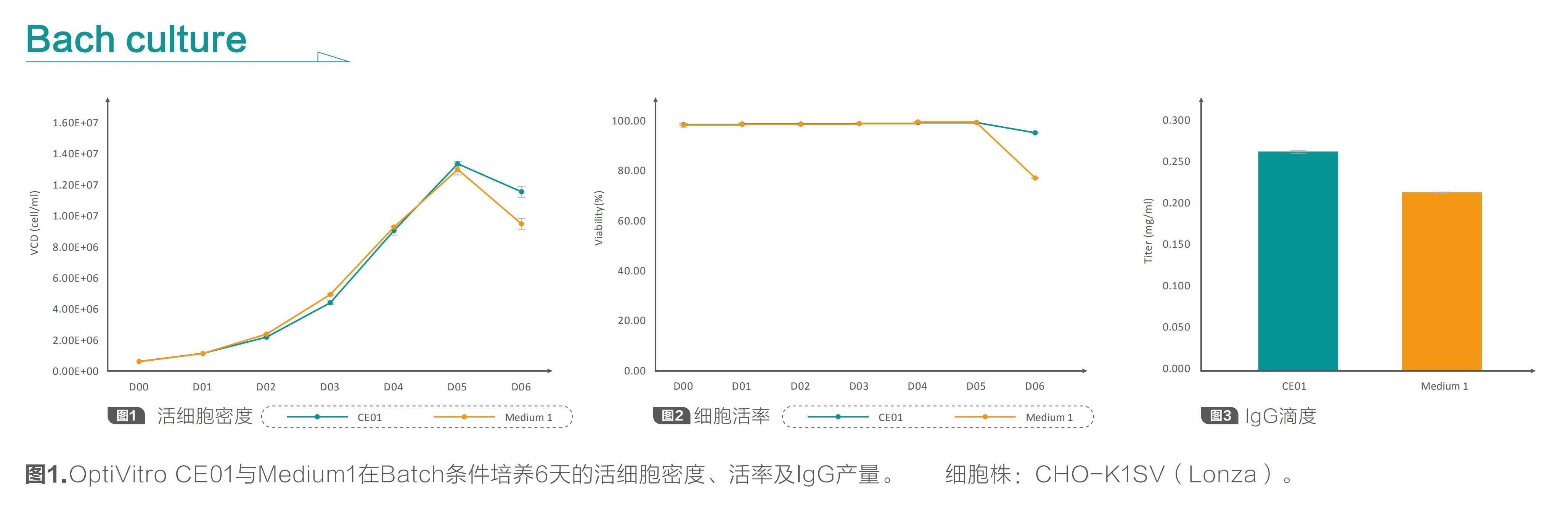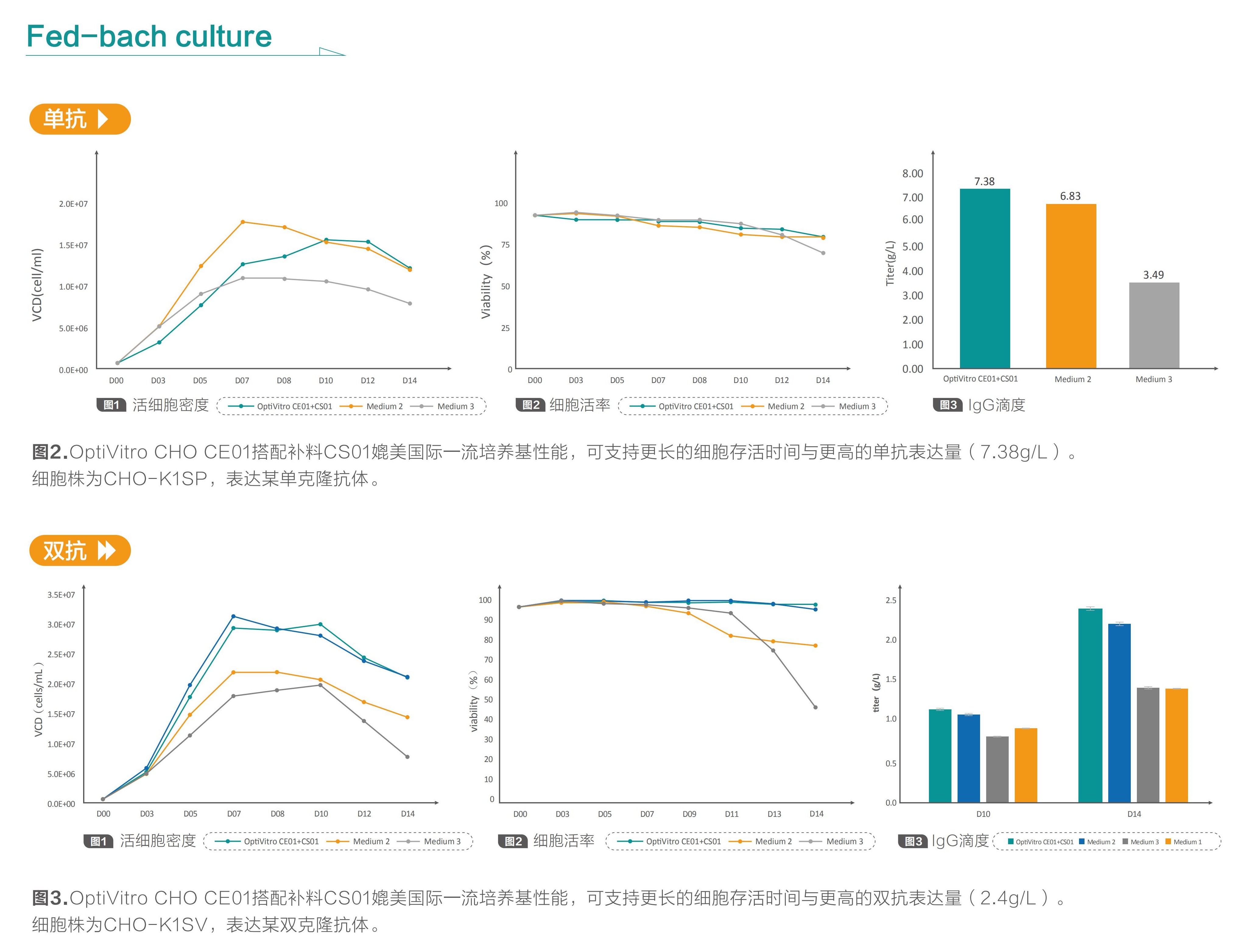 OptiVitro® CHO無血清基礎培養基CE01和OptiVitro® CHO 補料培養基CS01α/CS01β是經過特殊設計開發的全新一代不含有任何動物性來源成分的、無蛋白/多肽的、化學成分明確的無血清培養基,適用于多種中國倉鼠卵巢細胞(CHO)的高密度、高活率、大規模的懸浮培養,可實現蛋白產物的高滴度表達。