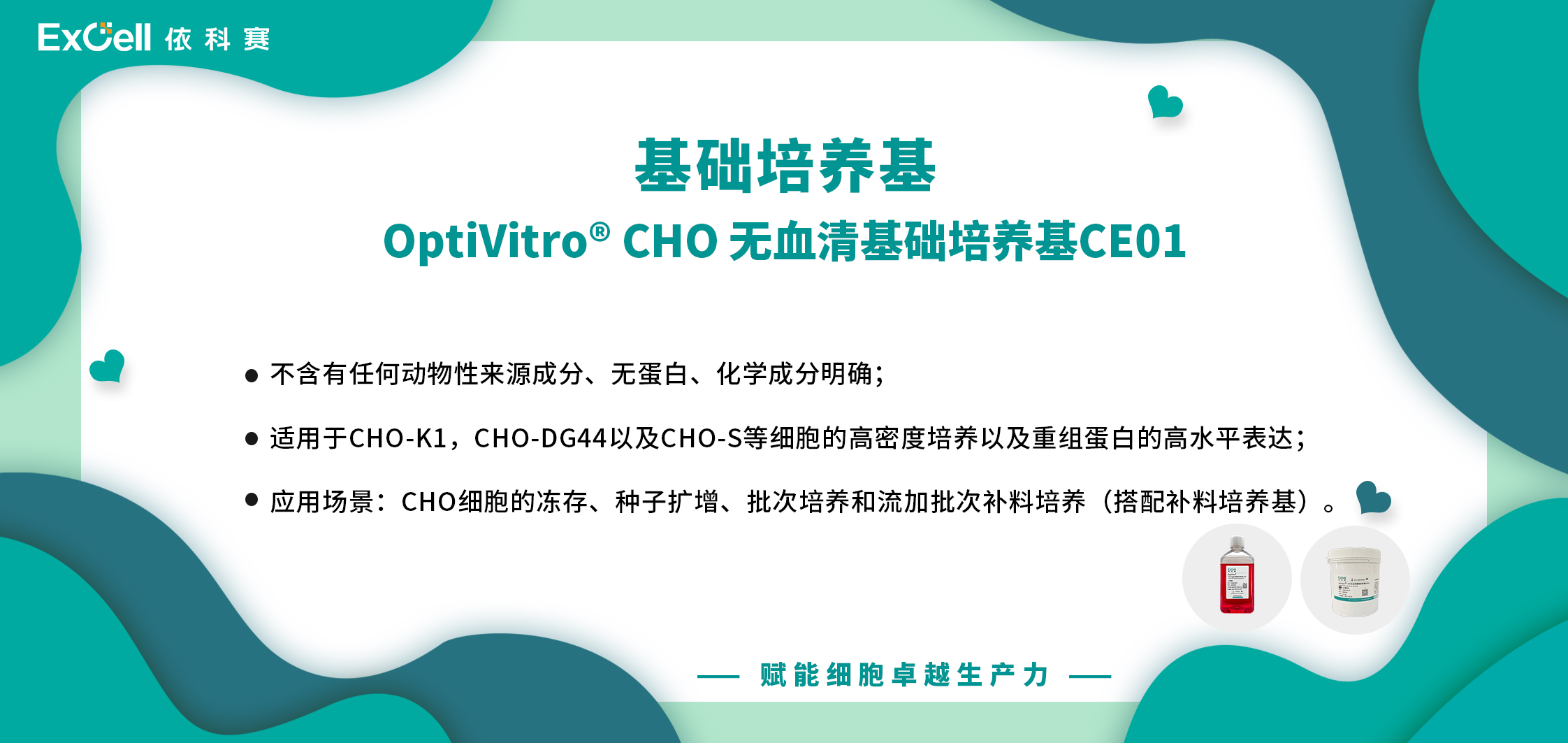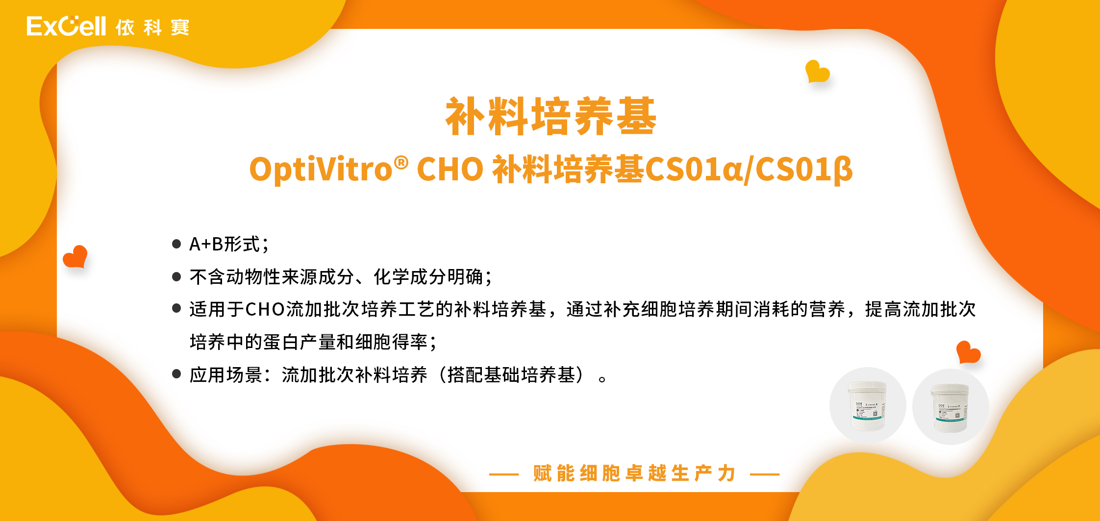 依科賽隆重推出全新一代OptiVitro® CHO無血清培養基黃金組合:OptiVitro® CHO 無血清基礎培養基CE01 和 OptiVitro® CHO 補料培養基CS01α/CS01β, 強強聯合,C位出道,咖位十足,讓我們一起認識一下這對神仙眷侶吧~