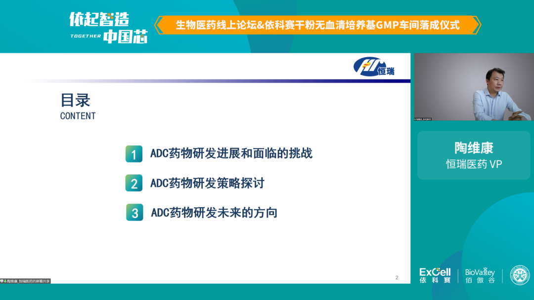 各嘉賓聚焦行業(yè)熱點(diǎn)話題,為大家?guī)砭始姵实难葜v報(bào)告,干貨滿滿。其中,恒瑞醫(yī)藥VP陶維康帶來主題為《ADC藥物研發(fā)進(jìn)展》演講報(bào)告。陶總從ADC藥物研發(fā)進(jìn)展及面臨的挑戰(zhàn)、ADC藥物研發(fā)策略和探討及ADC藥物研發(fā)未來的方向三個(gè)方面,向大家詳細(xì)解讀了ADC藥物領(lǐng)域的最新進(jìn)展。