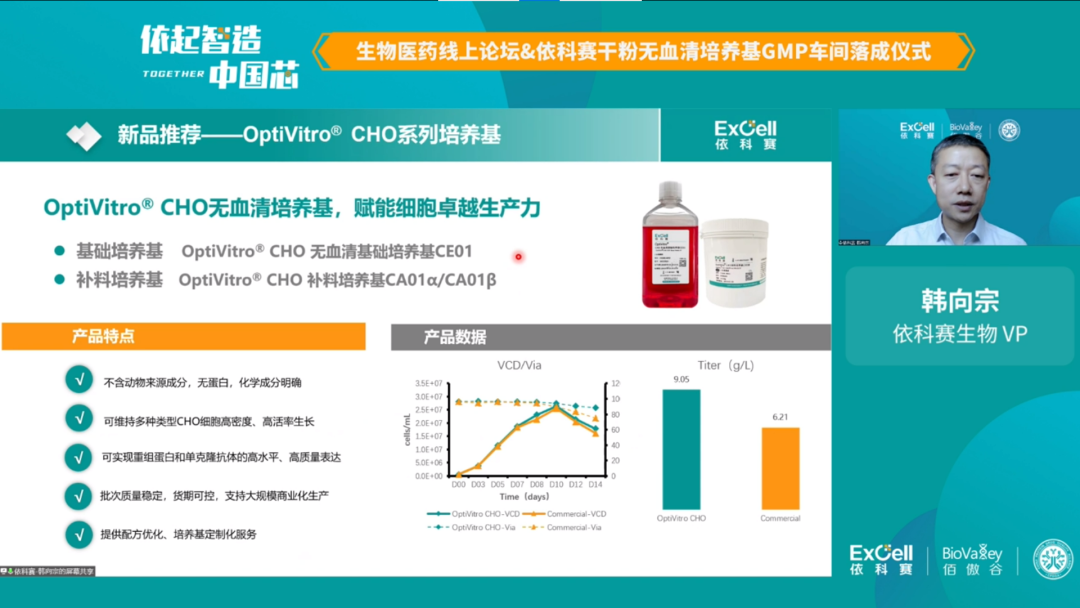 2022年6月18日,“依起智造·中國芯”生物醫(yī)藥線上論壇&依科賽干粉無血清培養(yǎng)基GMP車間落成儀式圓滿舉行。中科院院士裴鋼、IBT聯(lián)合創(chuàng)始人周新華、恒瑞醫(yī)藥VP 陶維康、天廣實(shí)VP 葉培、科望生物VP 王冠驊、依科賽生物董事長 陳旭、依科賽生物CEO 張昆、依科賽生物VP 韓向宗出席本次活動(dòng),通過線上直播,共話行業(yè)新技術(shù),共論產(chǎn)業(yè)新機(jī)遇,共同見證依科賽干粉無血清培養(yǎng)基GMP車間正式落成的璀璨時(shí)刻。