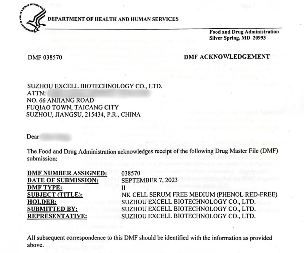 因此,使用依科賽OptiVitroNK細胞無血清培養基的客戶,在向FDA提交臨床申請或上市注冊的監管備案文件時,可通過向依科賽獲取DMF授權,直接引用關聯DMF編號038570,有效節約產品審查和評估時間,縮減新藥臨床申報的準備工作,一定程度上促進了藥物上市申報進程。