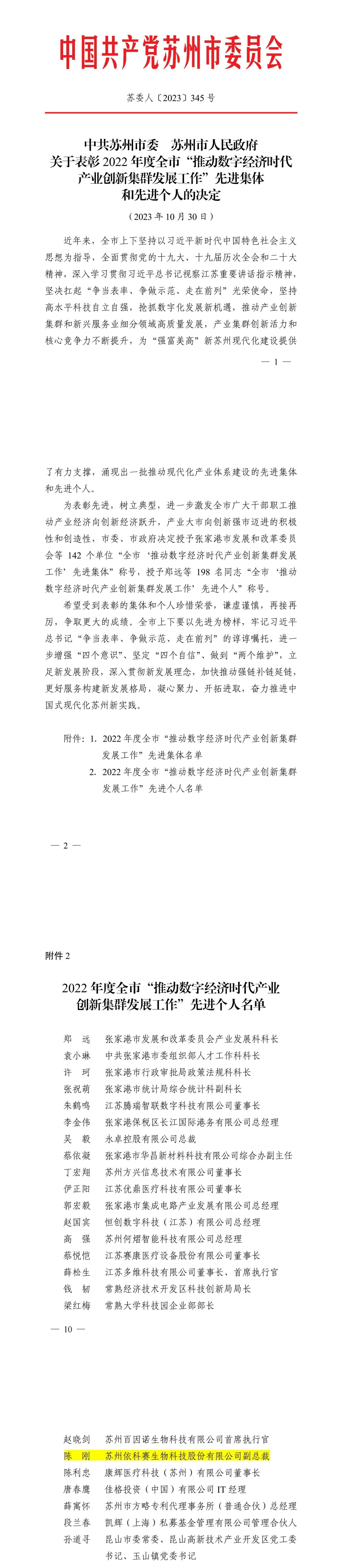 日前,蘇州市發布了“推動數字經濟時代產業創新集群發展工作”先進個人表彰對象名單,我司COO陳剛先生榮獲“推動數字經濟時代”先進個人。