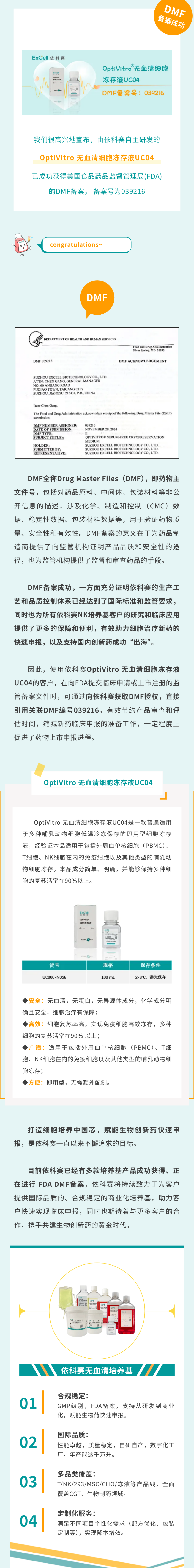 #新成果# 依科賽【OptiVitro無血清細胞凍存液UC04】 FDA DMF備案成功
