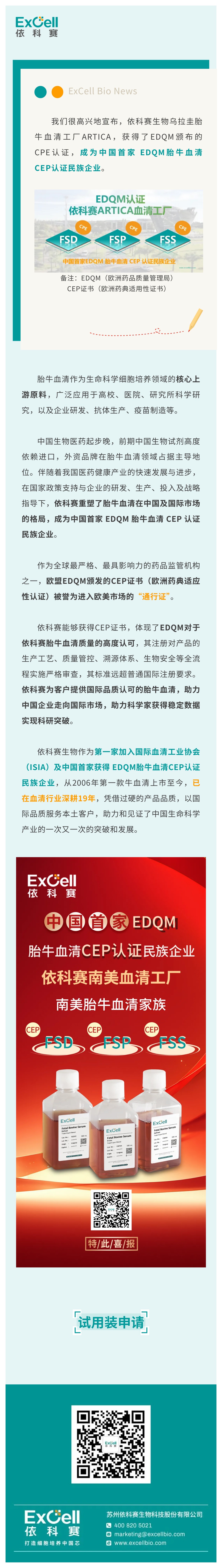 國際品質 本土服務:國內首家獲得EDQM胎牛血清CEP認證企業,賦能細胞培養