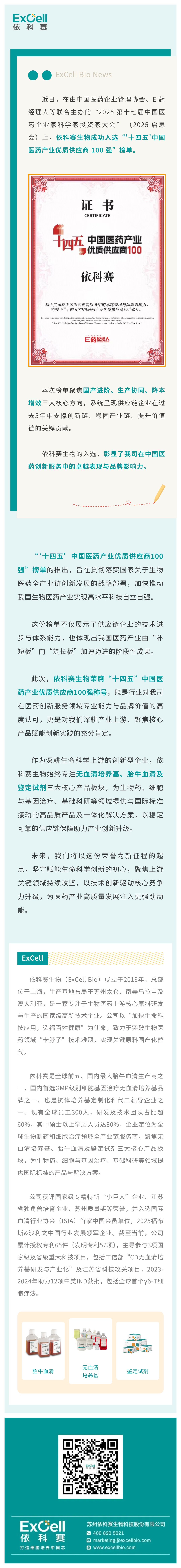 喜報|依科賽榮膺“十四五”中國醫藥產業優質供應商100強稱號