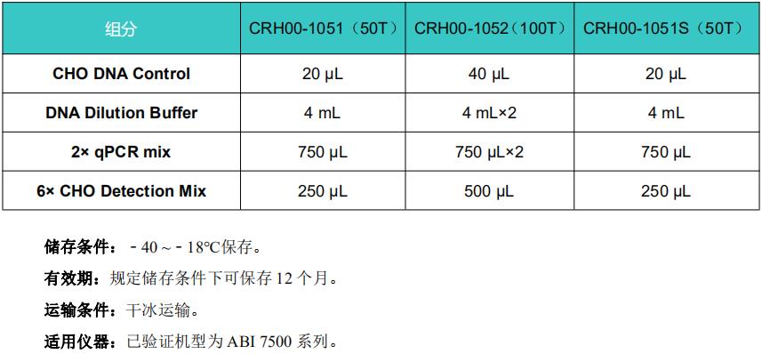 本產品適用于以中國倉鼠卵巢細胞(CHO-K1,CHO-S,CHO-DG44,CHO-GS等細胞系)為宿主生 產的生物藥原液、成品、半成品、中間品或工藝過程監控樣本。為獲得定量樣本DNA的校準曲線,試劑 盒中包含制備校準曲線的DNA校準品CHO DNA Control,用于制備6個稀釋梯度的校準點(300 pg/μL至3 fg/μL)。
